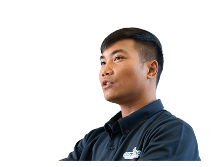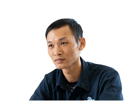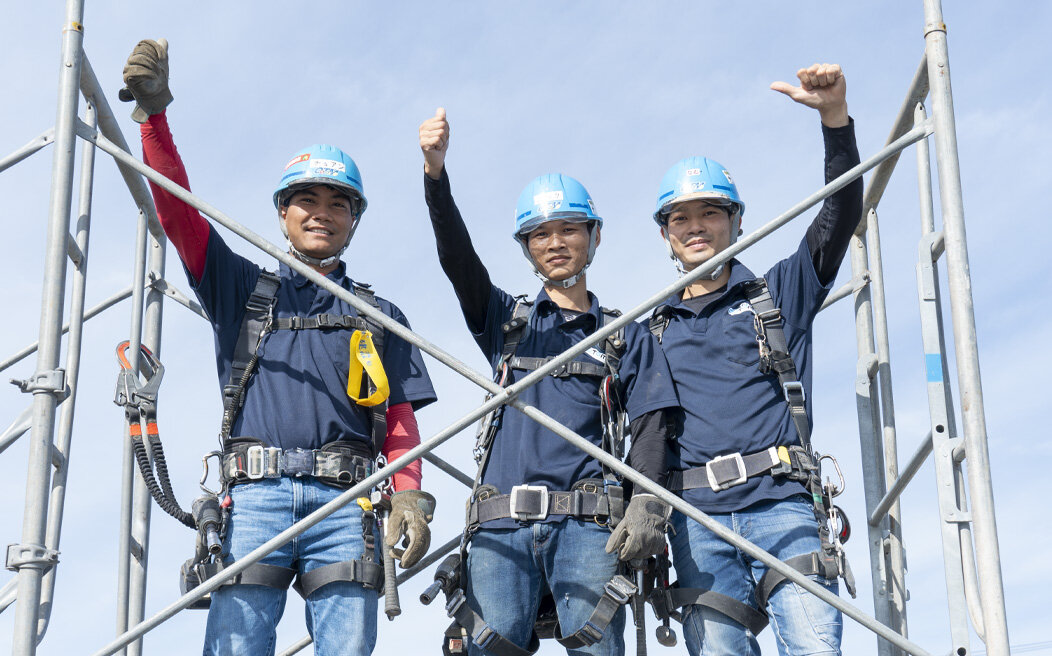 日本に来たばかりの頃、仕事の忙しさに悩まされたというナムさん。「睡眠時間がベトナムにいる時より短くなったのが一番きつかったです」。そんななかでも現場で先輩たちに仕事を教えてもらいながら、今では一人で何でもこなせるようになったとか。「高所での作業は危険がつきもの。でも今は安全第一に仕事ができるようになり、やりがいも出てきました」。