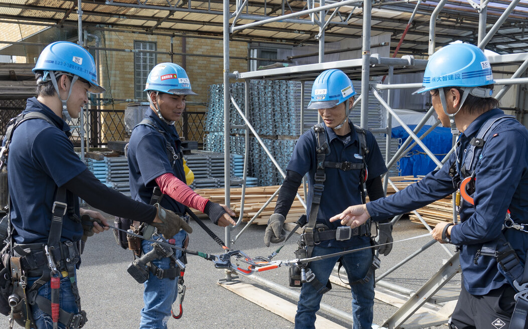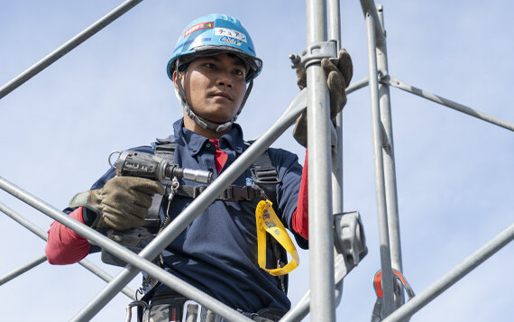鳶(とび)は主に力仕事が多く、身体能力や体力面という点でも若い方のほうが向いている業種です。あくまで私の感想ですが、特に若いベトナム人はバランス感覚が良く、物覚えも早い。足元の悪い高所でも問題なく力を発揮してくれているので非常に助かっています。