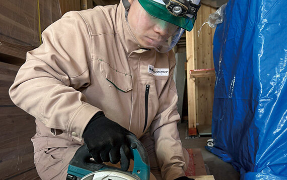 当事業部では2023年から2名の特定技能外国人を受け入れ、主にボード工として働いてもらっています。建築技術・作業スキルの向上を目的にボード作業以外の作業にも携わりますが、これにより工事現場の進捗・効率向上に貢献してもらっています。そのため、フルハーネスや足場などの特別教育を受講させることにし、なかでも母国語で学べるJACのオンライン特別教育が適していると判断しました。
