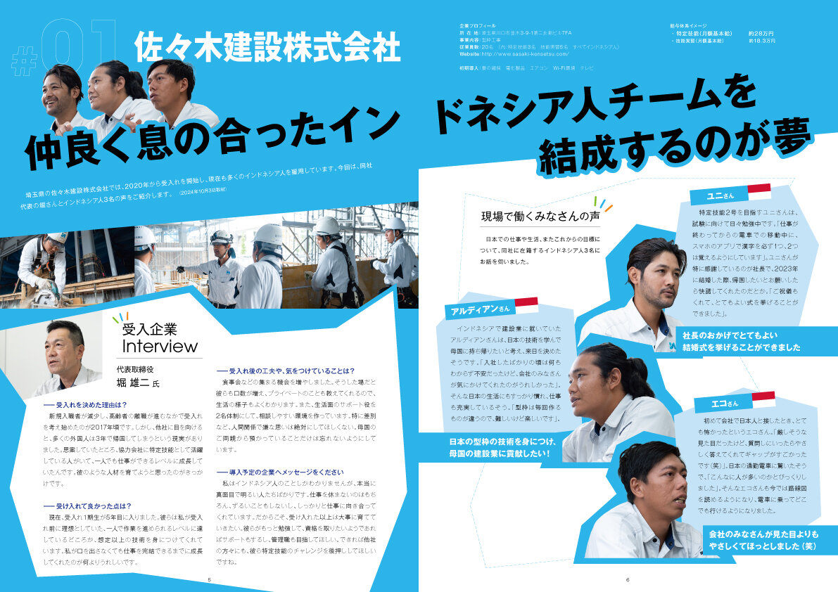 - 仲良く息の合ったインドネシア人チームを結成するのが夢 佐々木建設株式会社(特定技能3名 技能実習5名 すべてインドネシア人)