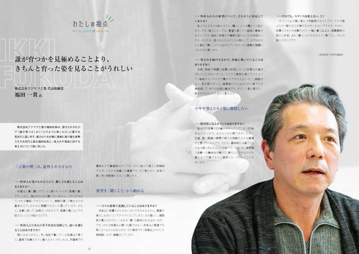 - 誰が育つかを見極めることより、きちんと育った姿を見ることがうれしい 株式会社フジヤマ工業 代表取締役 福田 一貴 氏