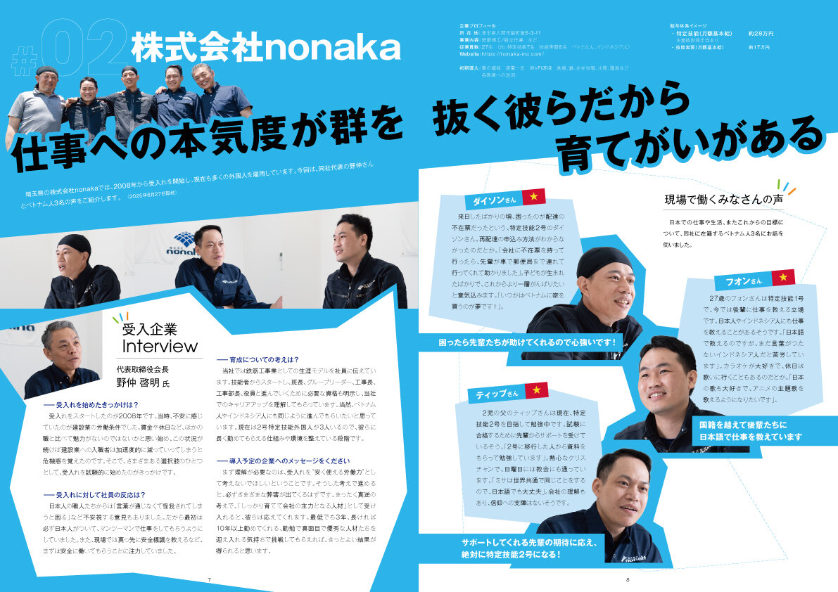 - 仕事への本気度が群を抜く彼らだから育てがいがある 株式会社nonaka(特定技能7名 技能実習6名 ベトナム人、インドネシア人)