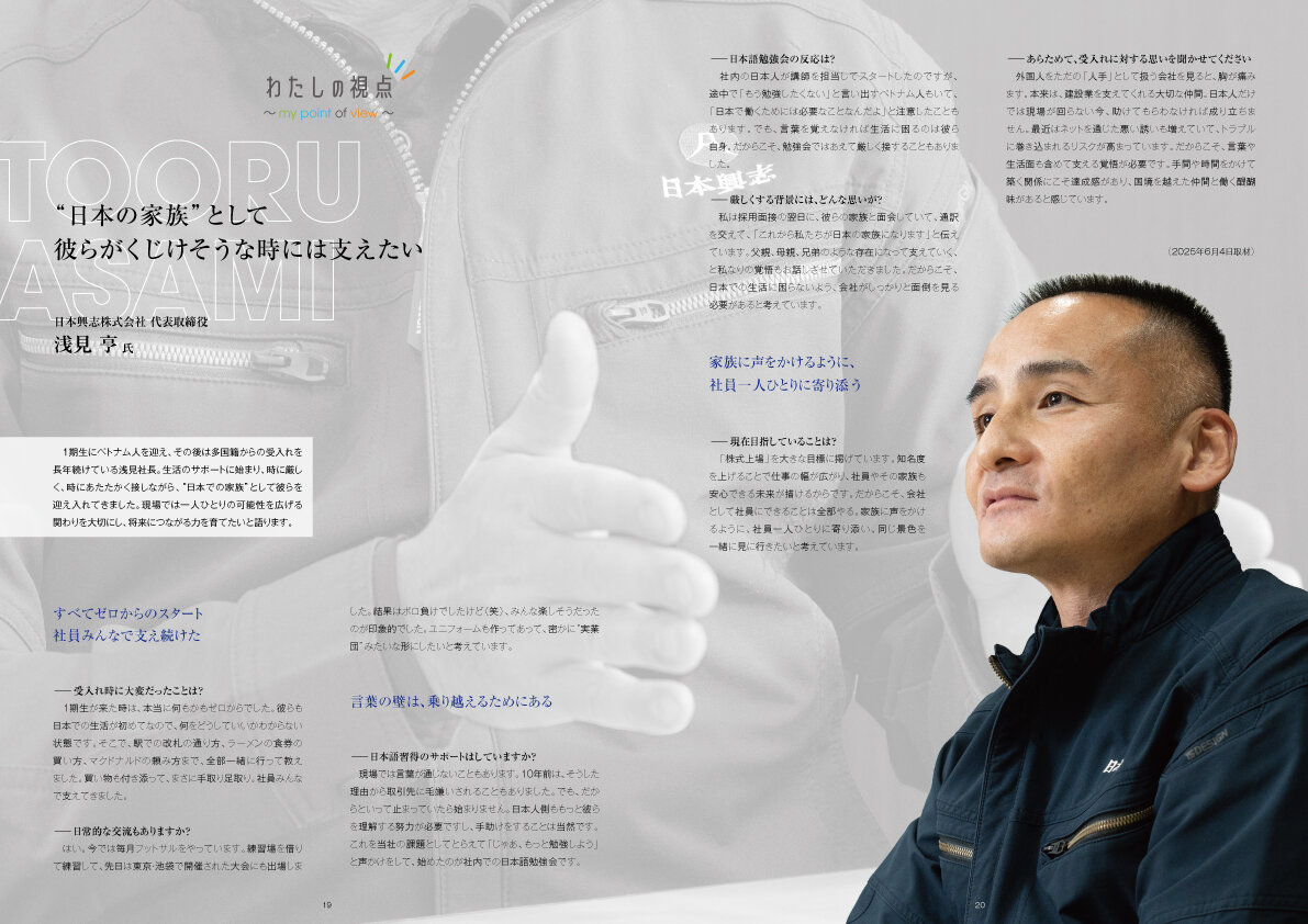 - “日本の家族”として彼らがくじけそうな時には支えたい 日本興志株式会社 代表取締役 浅見 亨 氏